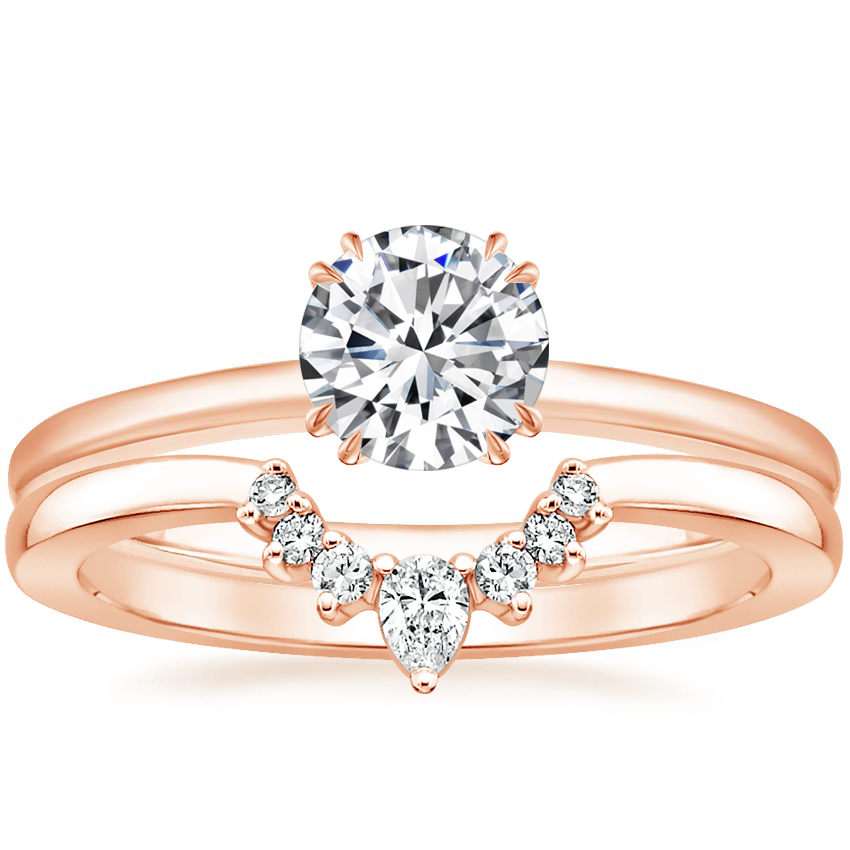 14K Rose Gold Sora Diamond Ring with Lunette Diamond Ring