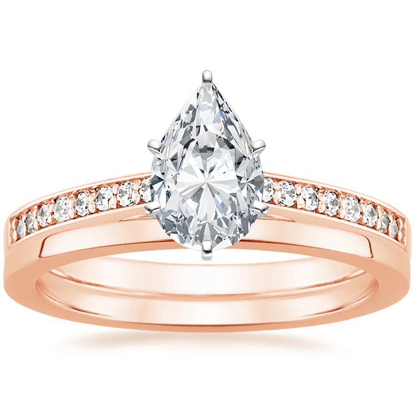 14K Rose Gold Starlight Diamond Ring with Petite Quattro Wedding Ring