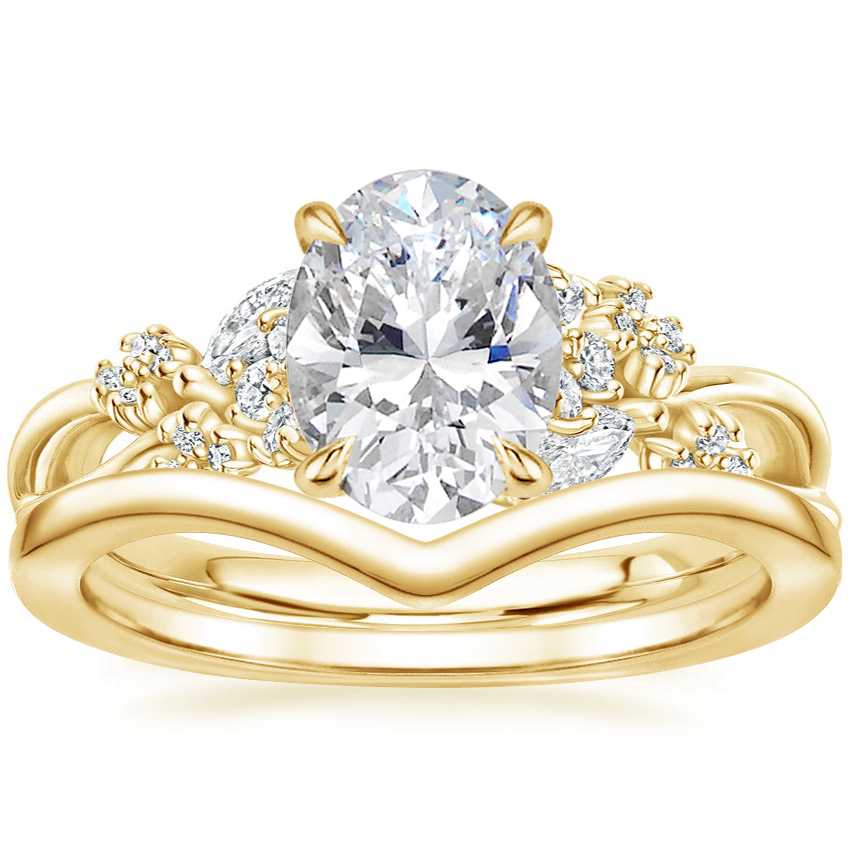 18K Yellow Gold Summer Blossom Diamond Ring (1/4 ct. tw.) with Chevron Ring