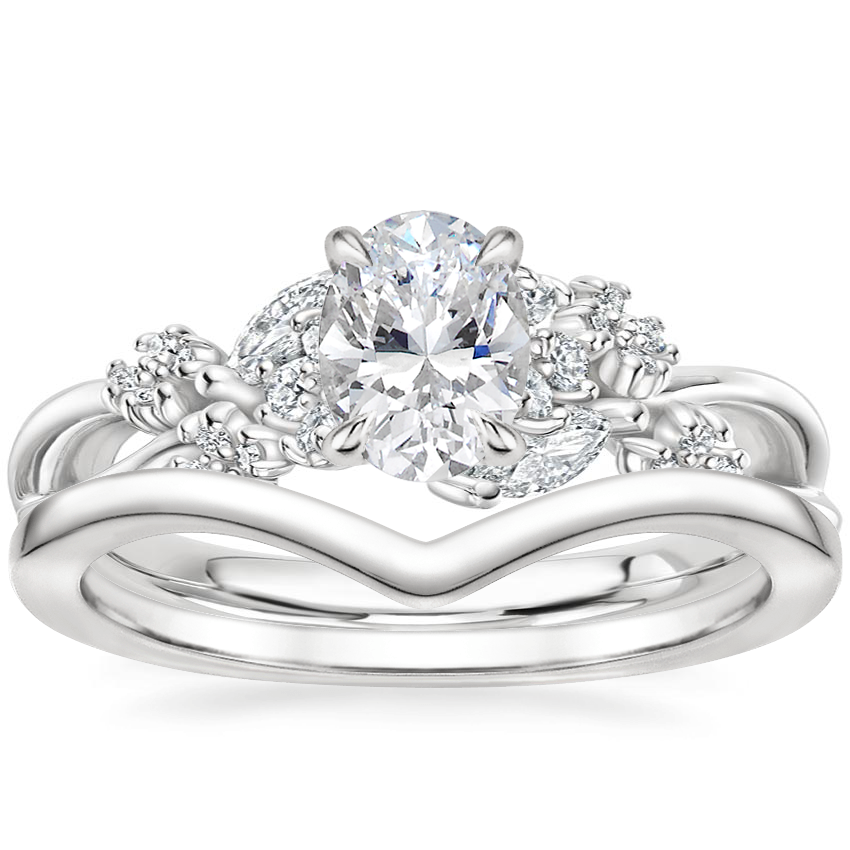 Platinum Summer Blossom Diamond Ring (1/4 ct. tw.) with Chevron Ring
