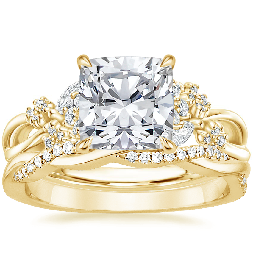 18K Yellow Gold Summer Blossom Diamond Ring (1/4 ct. tw.) with Petite Twisted Vine Diamond Ring (1/8 ct. tw.)