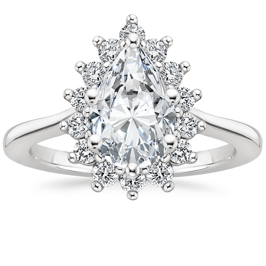 I had picked this as my engagement ring for my fiancé to buy when ready. I didn't know how it would look with a pear setting since there wasn't a physical example in stores because it's custom. No need to worry- it is BEAUTIFUL and so unique compared to other halo rings! I'm in LOVE!
