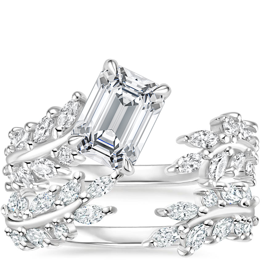 Inspired by the splendor of nature, a sparkling center gem blooms from glistening vines of diamond buds in this extraordinary bridal set. ... Read More