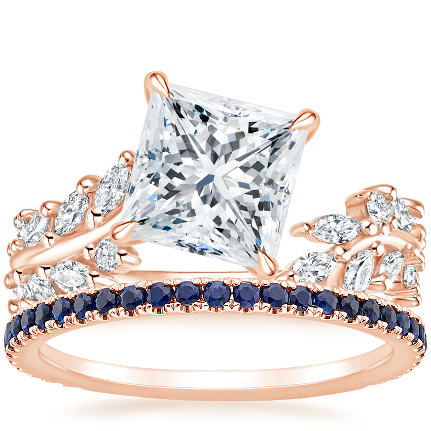 14K Rose Gold Sweeping Ivy Diamond Ring (1/2 ct. tw.) with Luxe Ballad Sapphire Ring