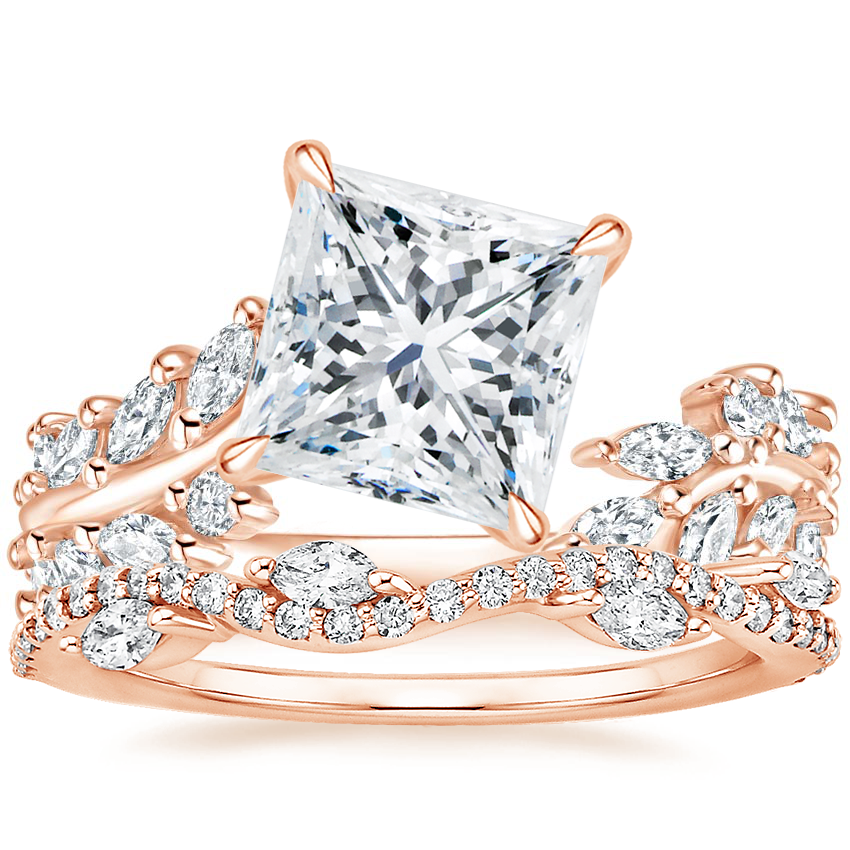14K Rose Gold Sweeping Ivy Diamond Ring (1/2 ct. tw.) with Luxe Winding Willow Diamond Ring (1/4 ct. tw.)