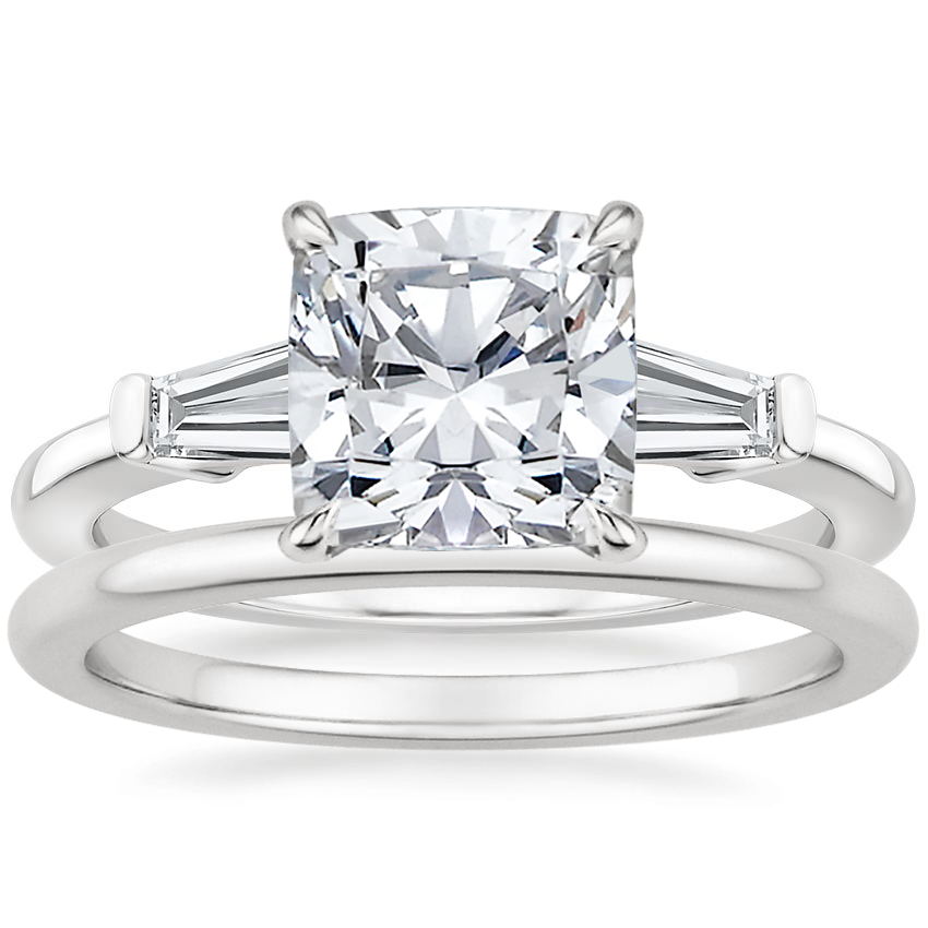 I am absolutely in love with my engagement ring! My fiancé and I went to a show room to look at rings, and this was on my wish list. I love how classic it looks, and it's not as common as a simple band engagement ring. I chose an emerald cut center stone. The only negative is that we chose 18k gold for the metal, so that means it is very soft and will scratch easily. The scratches aren't noticeable, but if you worry about that, maybe choose a different metal.