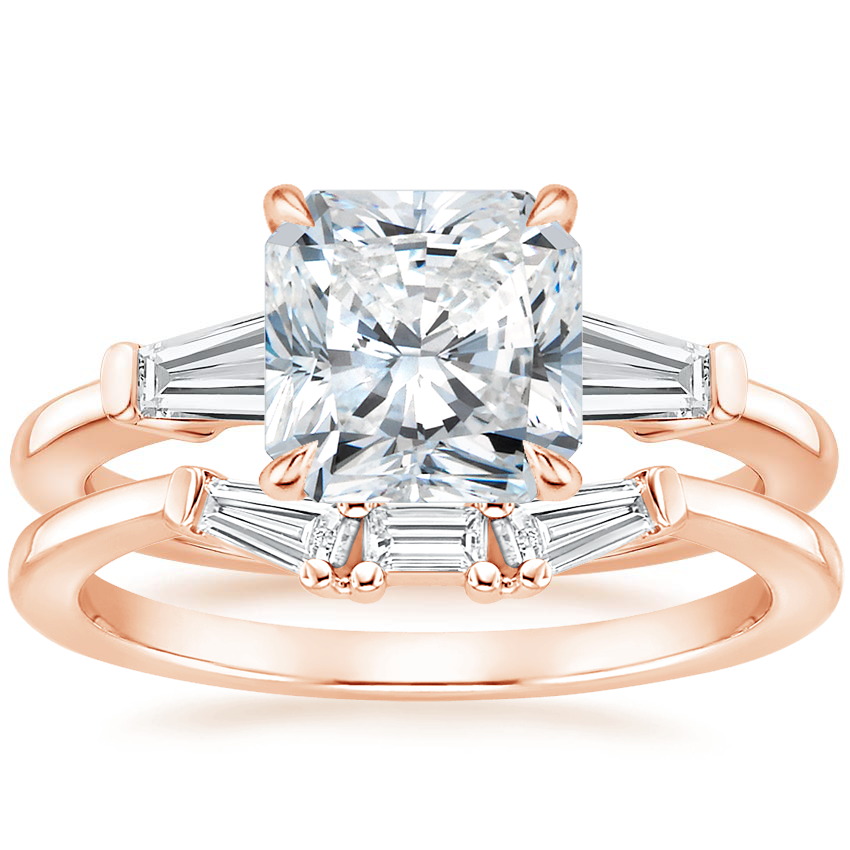 14K Rose Gold Symphony Lab Diamond Ring (1/2 ct. tw.) with Tapered Baguette Diamond Ring with 3.01 Carat Radiant Lab Grown Diamond