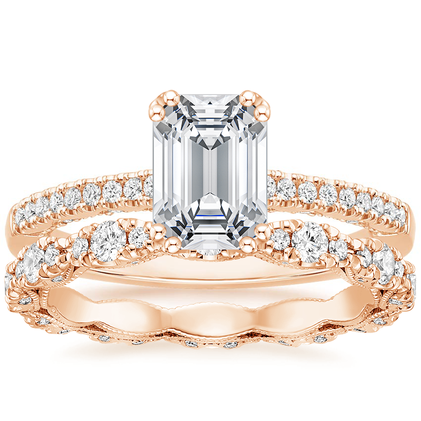 18K Rose Gold Tacori Coastal Crescent Pavé Diamond Ring with Tacori Petite Crescent Pavé Eternity Diamond Ring (5/8 ct. tw.)