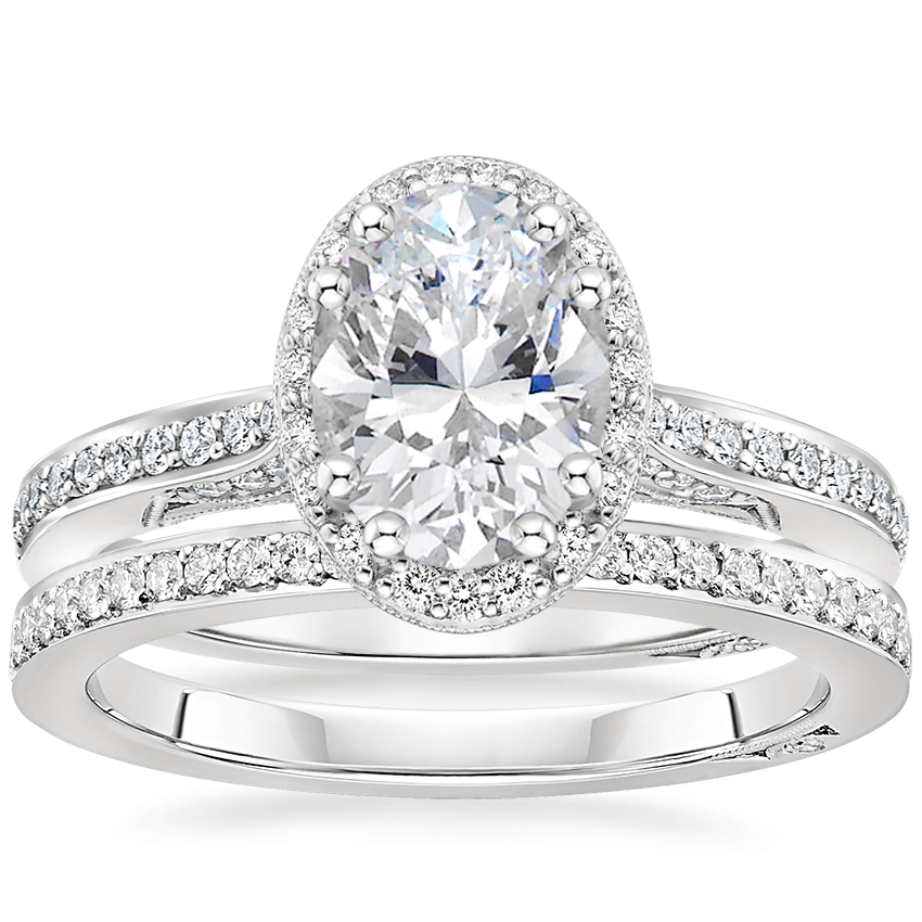 18K White Gold Tacori Dantela Bloom Diamond Ring with Tacori Dantela Eternity Diamond Ring (1/4 ct. tw.)