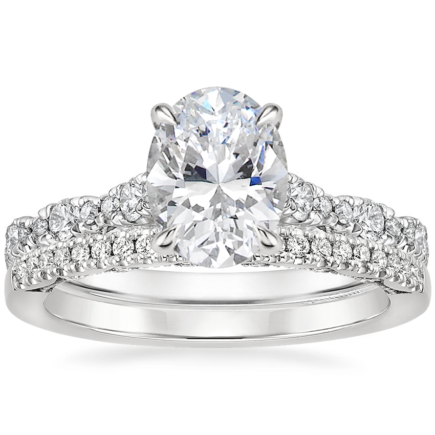 Platinum Tacori Petite Crescent Pavé Diamond Ring (1/3 ct. tw.) with Tacori Coastal Crescent Diamond Ring (1/5 ct. tw.)