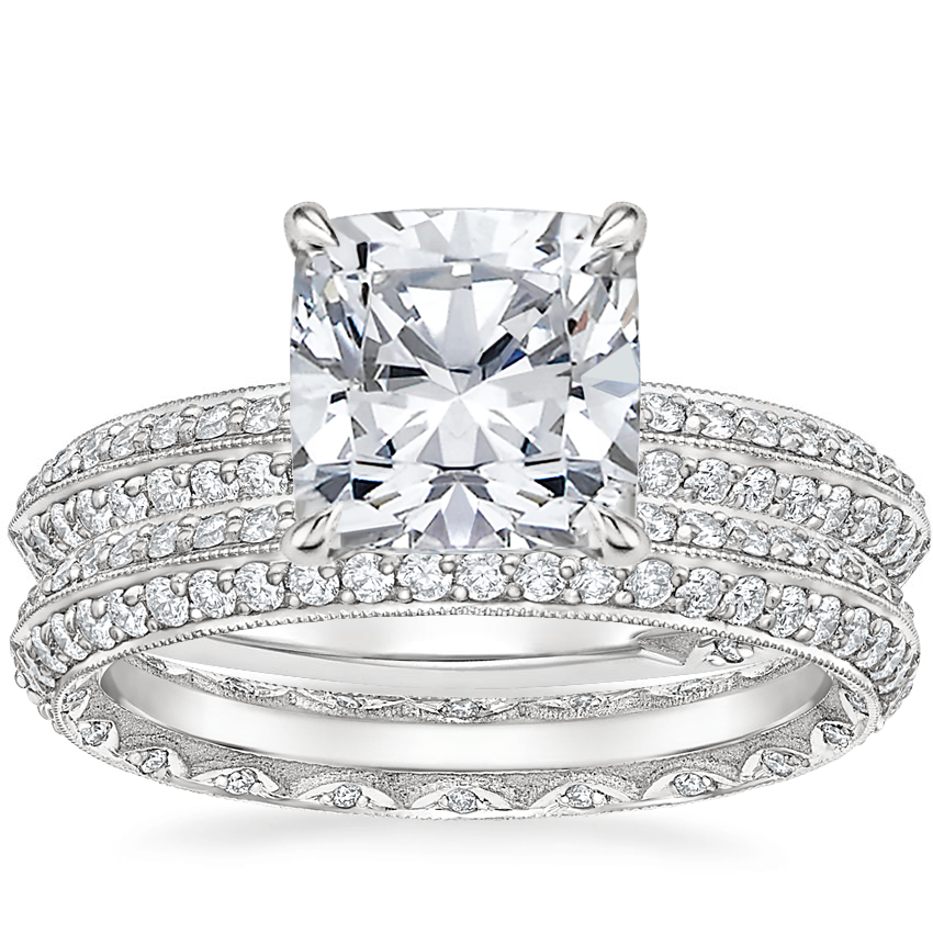 18K White Gold Tacori Sculpted Crescent Knife Edge Diamond Ring with Tacori Sculpted Crescent Knife Edge Eternity Diamond Ring (2/3 ct. tw.)