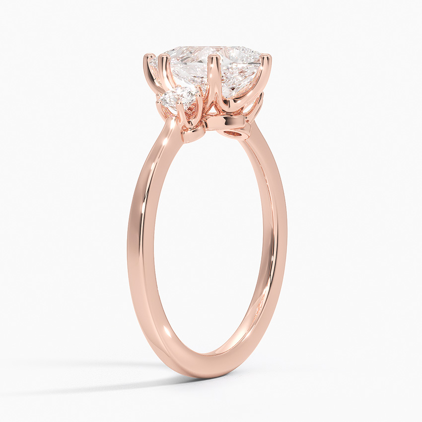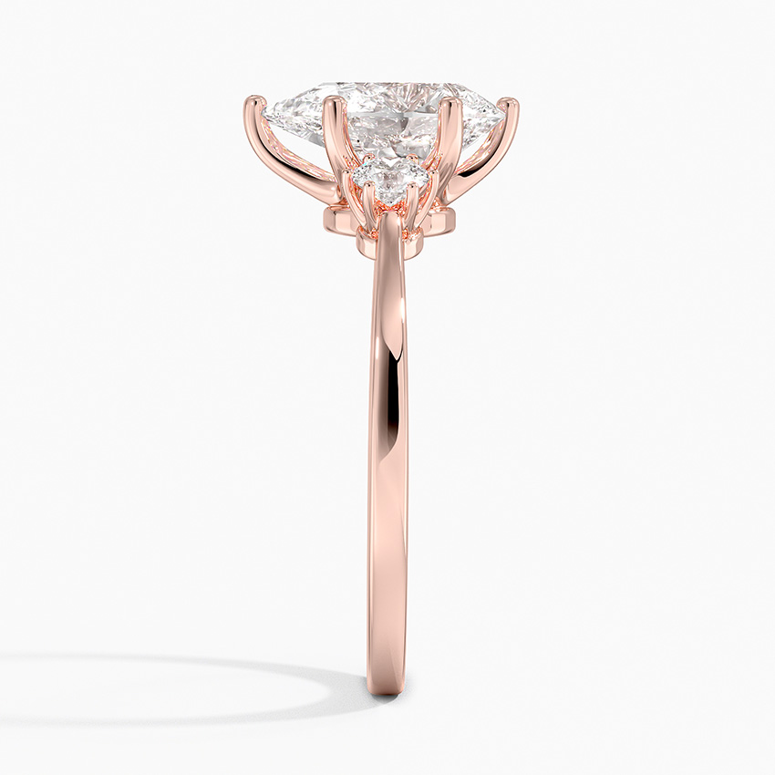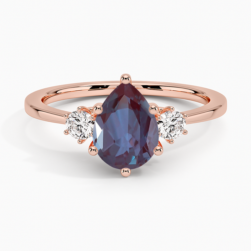 14K Rose Gold Tallula Three Stone Lab Diamond Ring with 9x6mm Color Change Pear Lab Grown Alexandrite