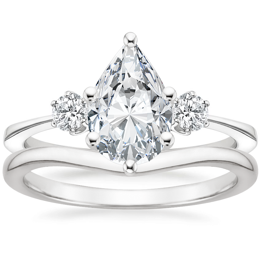18K White Gold Tallula Three Stone Diamond Ring with Petite Curved Wedding Ring