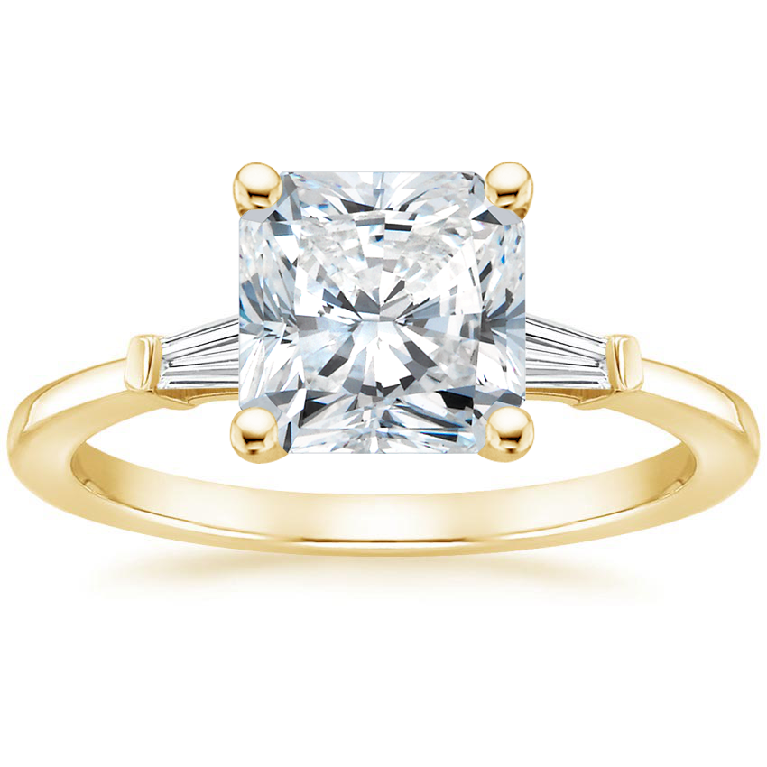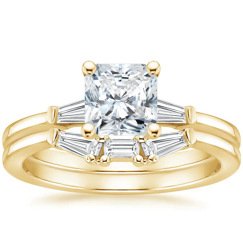 18K Yellow Gold Tapered Baguette Lab Diamond Bridal Set with 2.15 Carat Radiant Lab Grown Diamond