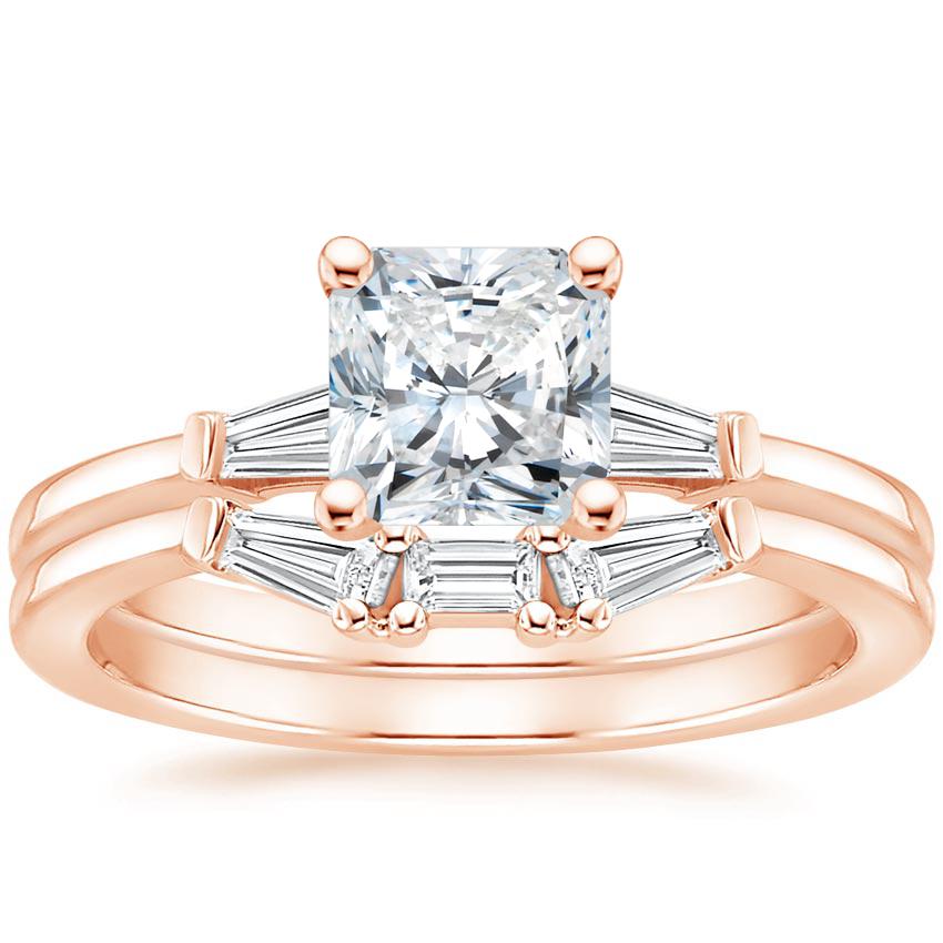 14K Rose Gold Tapered Baguette Lab Diamond Bridal Set with 2.15 Carat Radiant Lab Grown Diamond