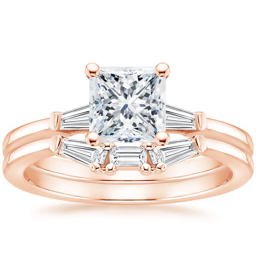 14K Rose Gold Tapered Baguette Diamond Bridal Set