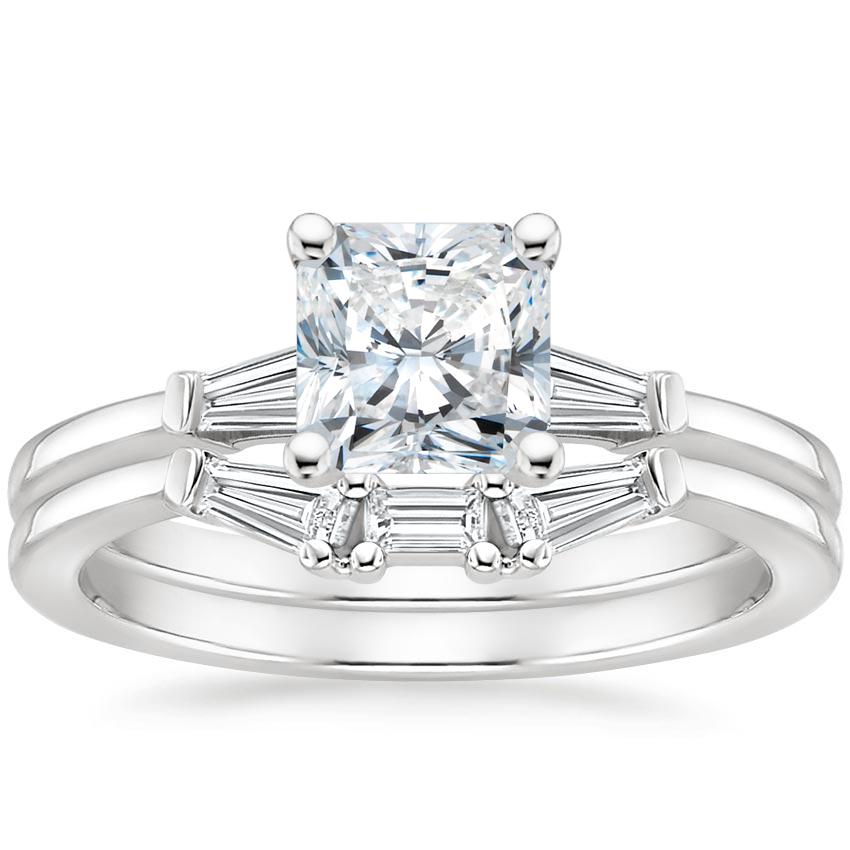 Captivating tapered baguette diamonds are bar-set in this elegant bridal set, brilliantly framing the center gem (2/5 total carat weight).