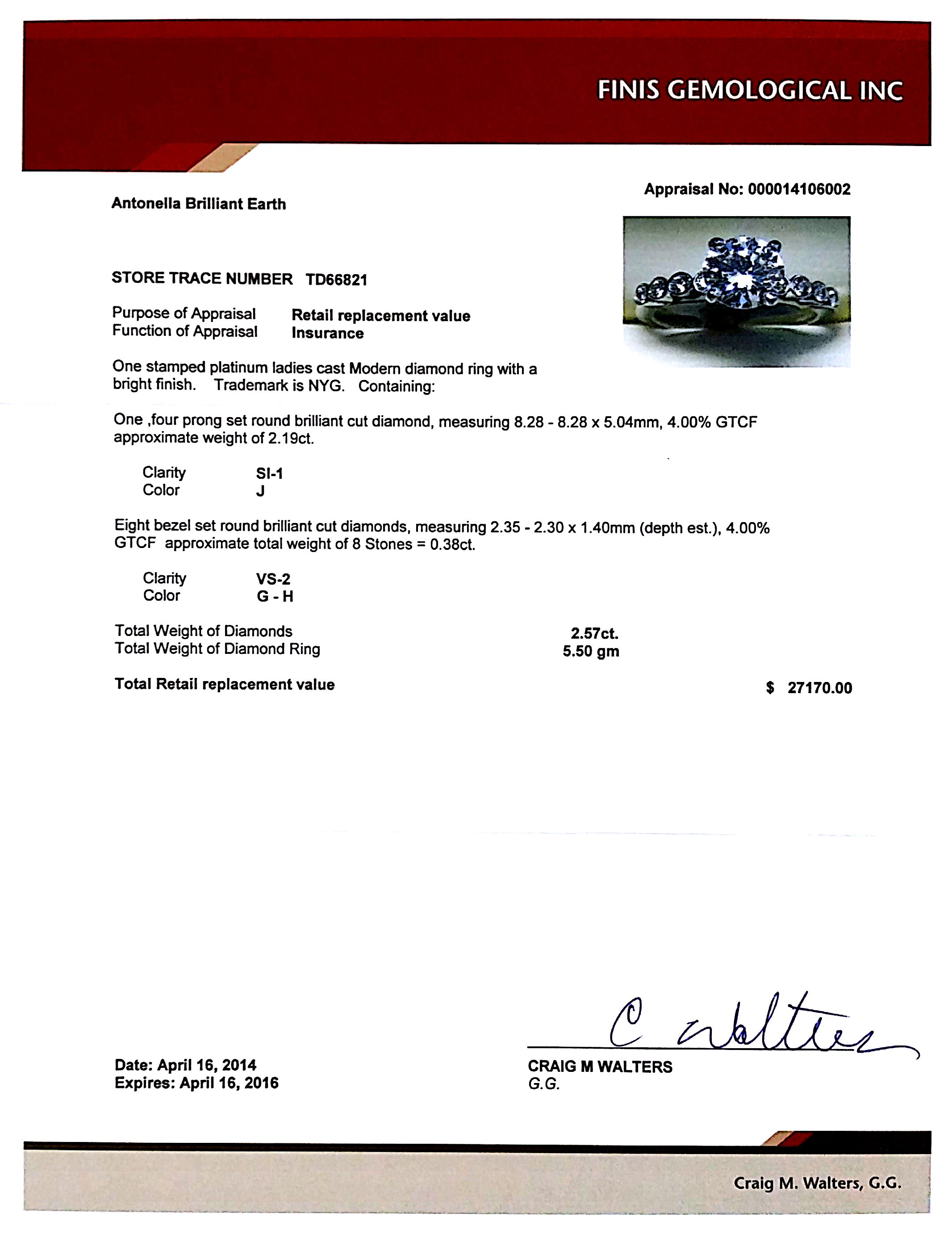 A stunning two carat round center diamond is truly outstanding. Bezel set round diamond accents make up the shank, creating a modern look (approx. 2.57 ct. tw.).
