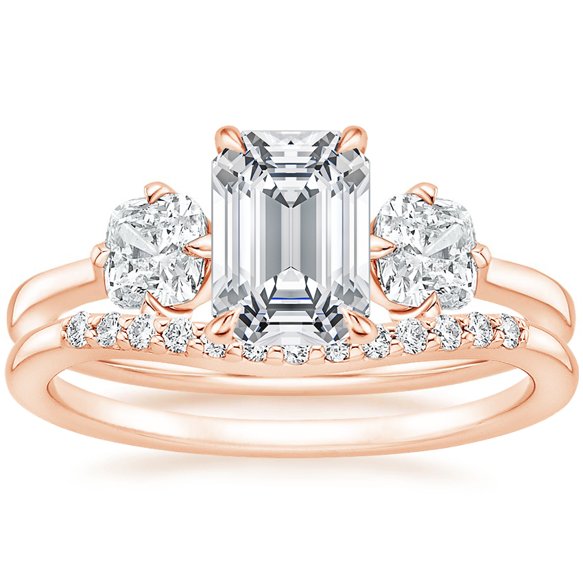 14K Rose Gold Three Stone Cushion Diamond Ring with Petite Curved Diamond Ring (1/10 ct. tw.)