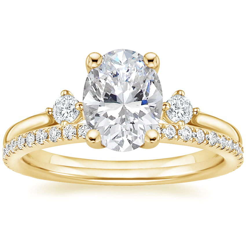18K Yellow Gold Three Stone Floating Lab Diamond Ring with Luxe Ballad Diamond Ring (1/4 ct. tw.) with 2.07 Carat Oval Lab Grown Diamond