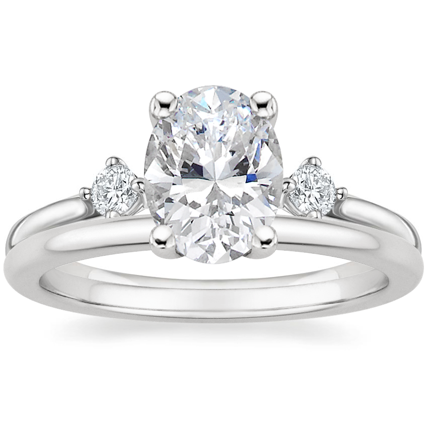 Platinum Three Stone Floating Lab Diamond Ring with Petite Comfort Fit Wedding Ring with 2.07 Carat Oval Lab Grown Diamond