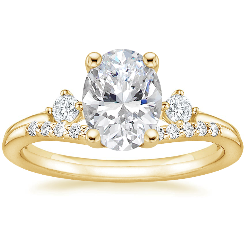 18K Yellow Gold Three Stone Floating Lab Diamond Ring with Petite Curved Diamond Ring (1/10 ct. tw.) with 2.07 Carat Oval Lab Grown Diamond
