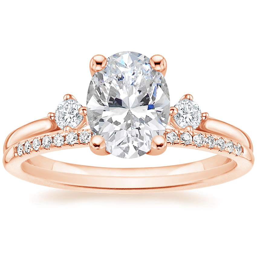 14K Rose Gold Three Stone Floating Lab Diamond Ring with Whisper Diamond Ring (1/10 ct. tw.) with 2.07 Carat Oval Lab Grown Diamond