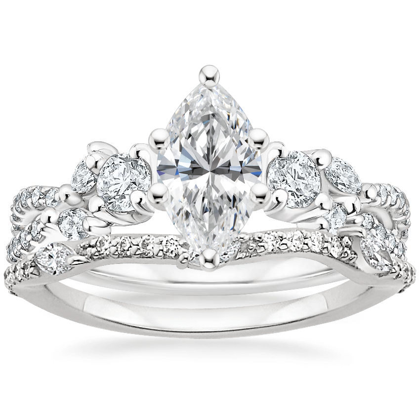 18K White Gold Three Stone Luxe Willow Diamond Ring (1/2 ct. tw.) with Luxe Willow Contoured Diamond Ring (1/5 ct. tw.)