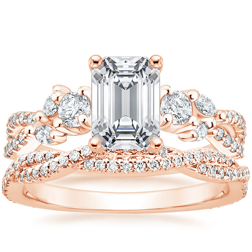 14K Rose Gold Three Stone Luxe Willow Diamond Ring (1/2 ct. tw.) with Petite Luxe Twisted Vine Diamond Ring (1/4 ct. tw.)