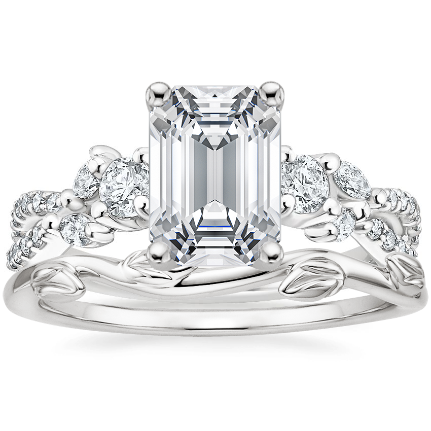 Three Stone Luxe Willow Diamond Ring (1/2 ct. tw.) with Winding Willow Ring in Platinum