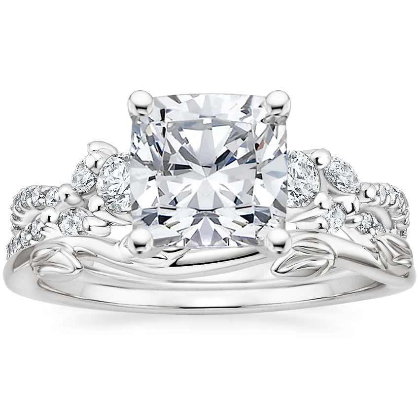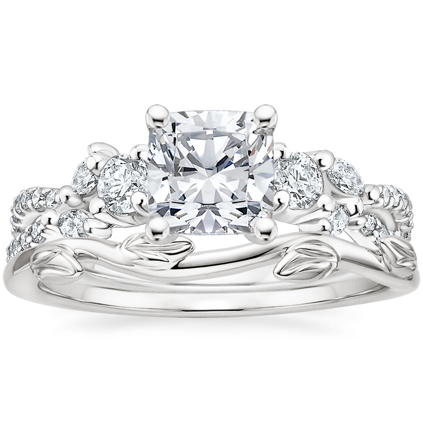 Platinum Three Stone Luxe Willow Diamond Ring (1/2 ct. tw.) with Winding Willow Ring with 1.0 Carat Cushion Diamond