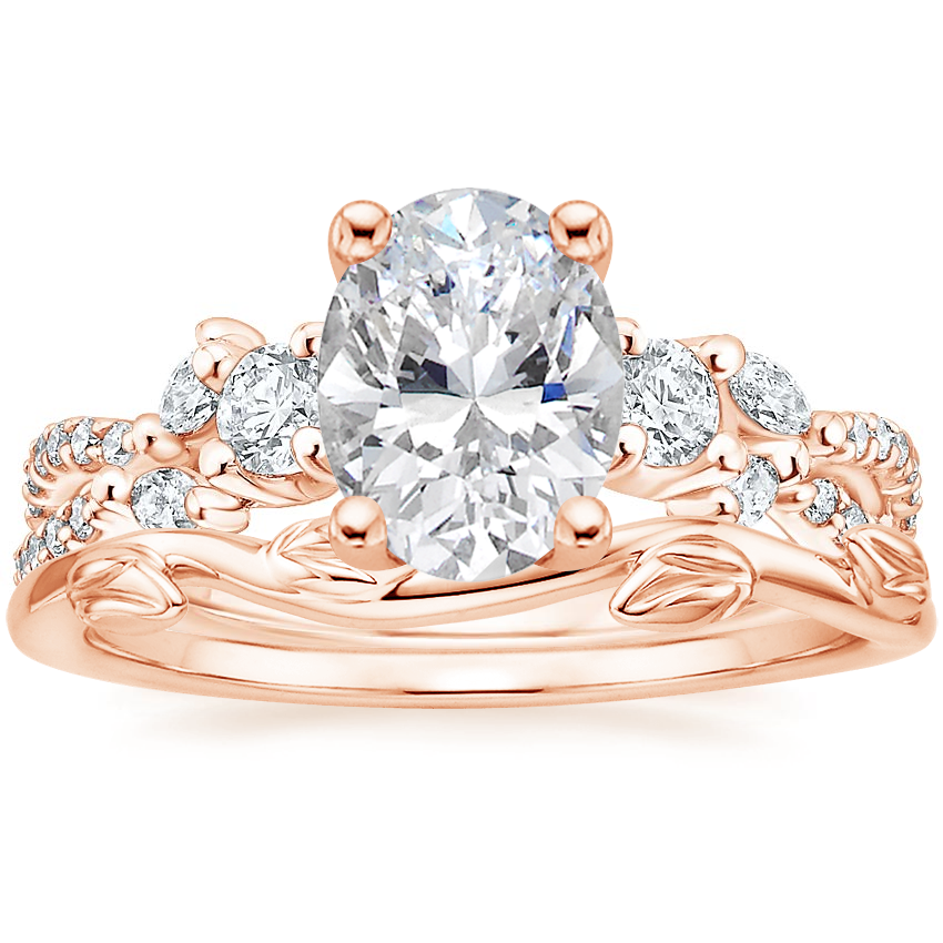 14K Rose Gold Three Stone Luxe Willow Diamond Ring (1/2 ct. tw.) with Winding Willow Ring