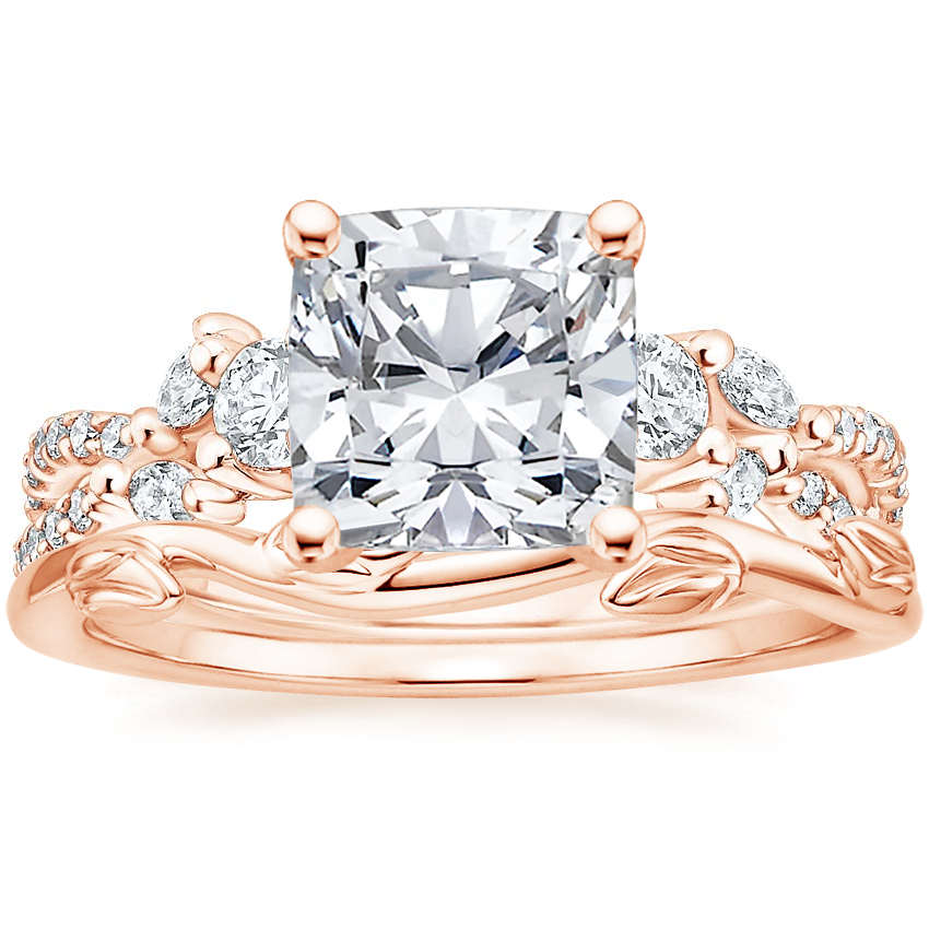 14K Rose Gold Three Stone Luxe Willow Diamond Ring (1/2 ct. tw.) with Winding Willow Ring with 1.0 Carat Cushion Diamond