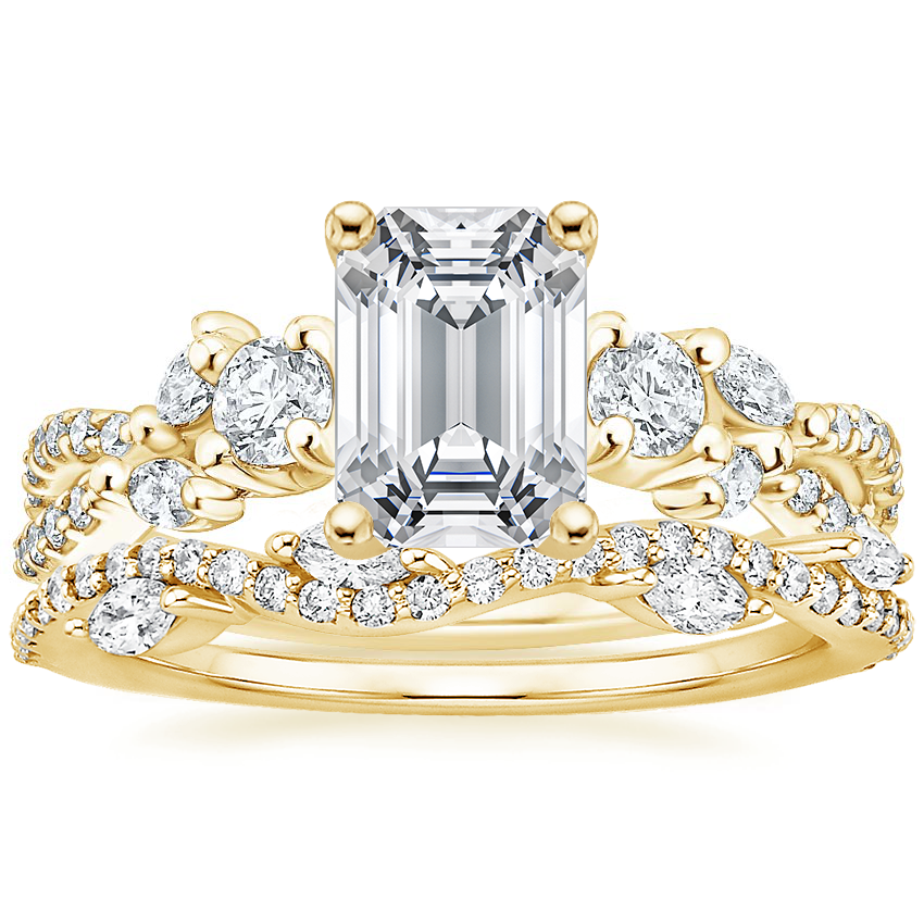 18K Yellow Gold Three Stone Luxe Willow Diamond Ring with Luxe Winding Willow Diamond Ring