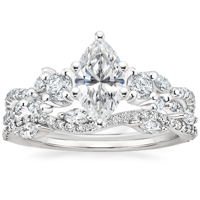 Platinum Three Stone Luxe Willow Lab Diamond Ring with Luxe Winding Willow Diamond Ring with 2.32 Carat Marquise Lab Grown Diamond