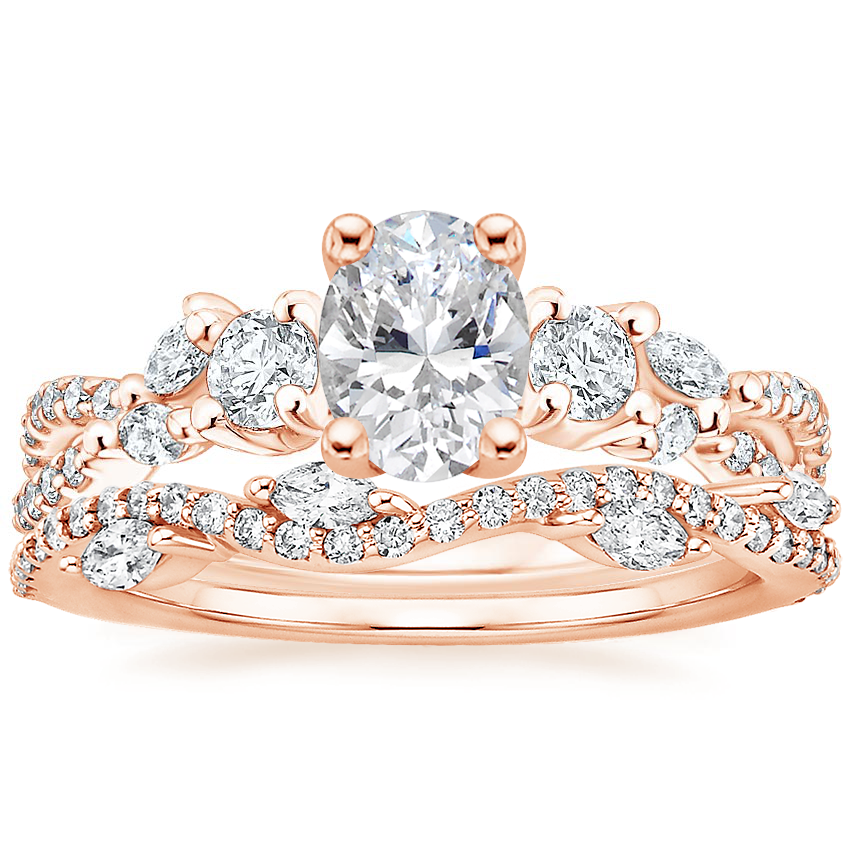 14K Rose Gold Three Stone Luxe Willow Diamond Ring with Luxe Winding Willow Diamond Ring