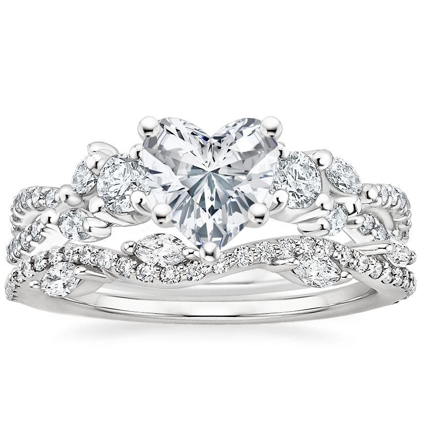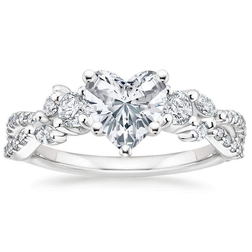 18K White Gold Three Stone Luxe Willow Diamond Ring with Luxe Winding Willow Diamond Ring with 0.53 Carat Heart Diamond