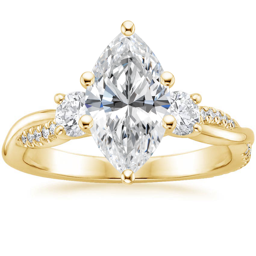 A nature-inspired twist on the classic three-stone ring, this design features entwined vines shimmering with pavé diamonds. ... Read More