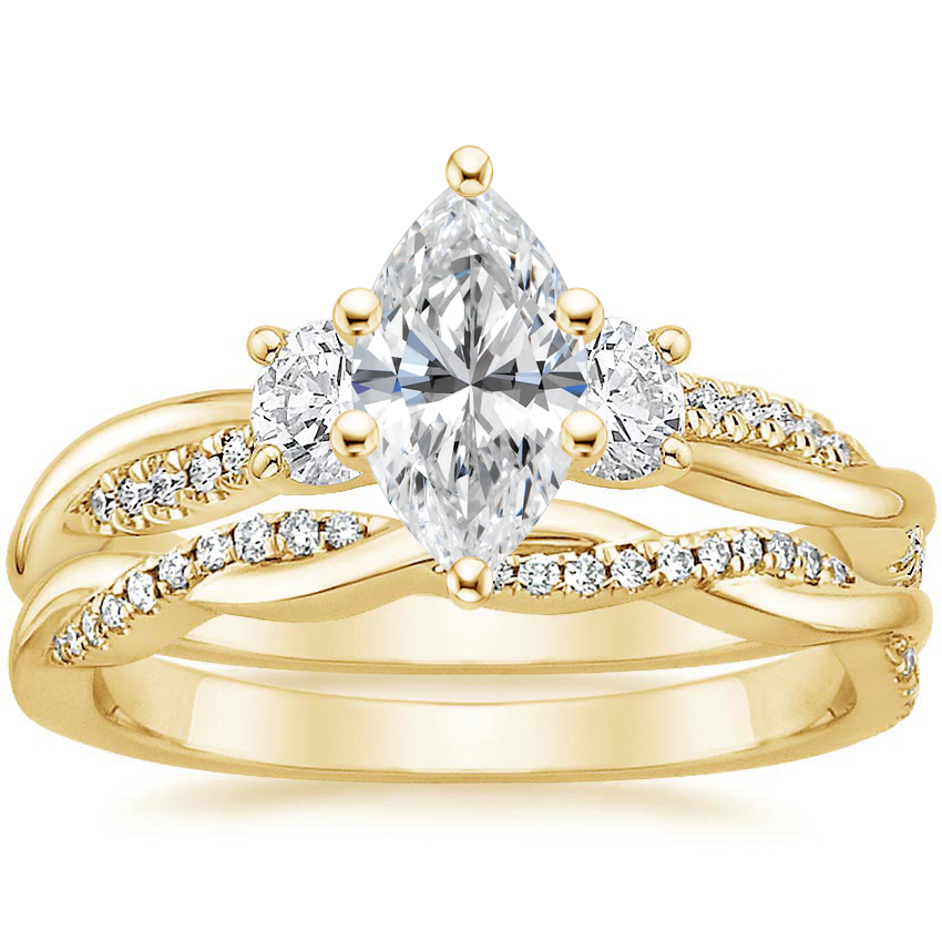 18K Yellow Gold Three Stone Petite Twisted Vine Diamond Bridal Set (1/2 ct. tw.)