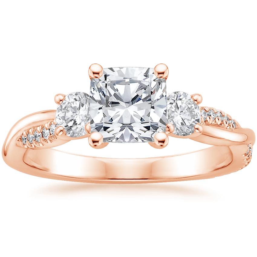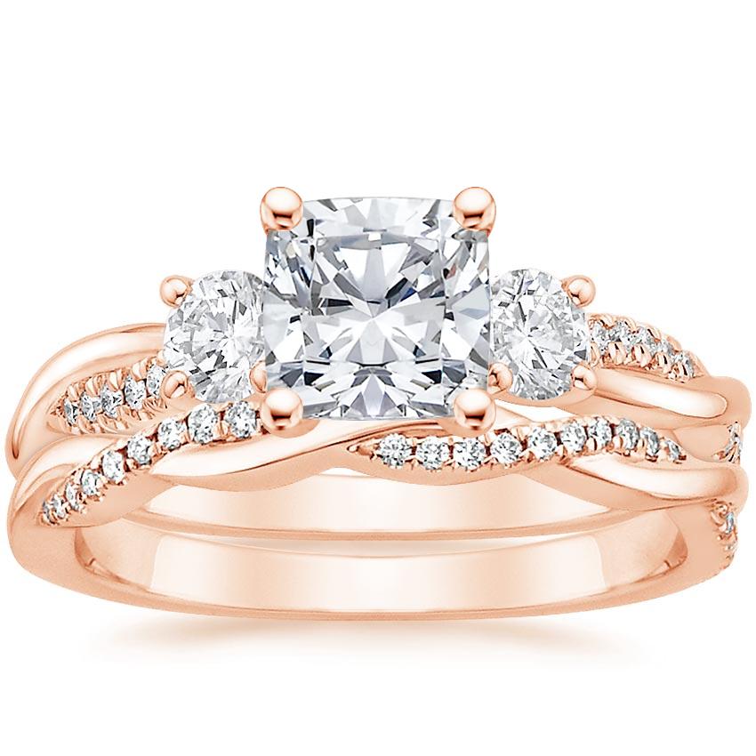 14K Rose Gold Three Stone Petite Twisted Vine Lab Diamond Bridal Set (1/2 ct. tw.) with 0.75 Carat Cushion Lab Grown Diamond