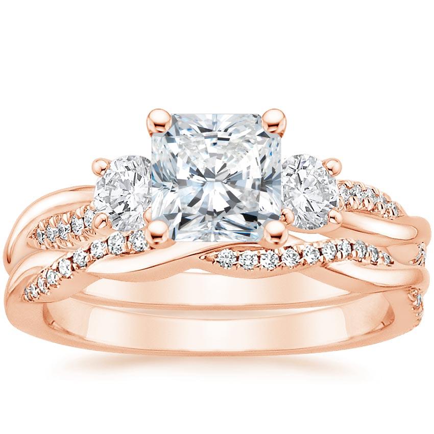14K Rose Gold Three Stone Petite Twisted Vine Diamond Bridal Set (1/2 ct. tw.)