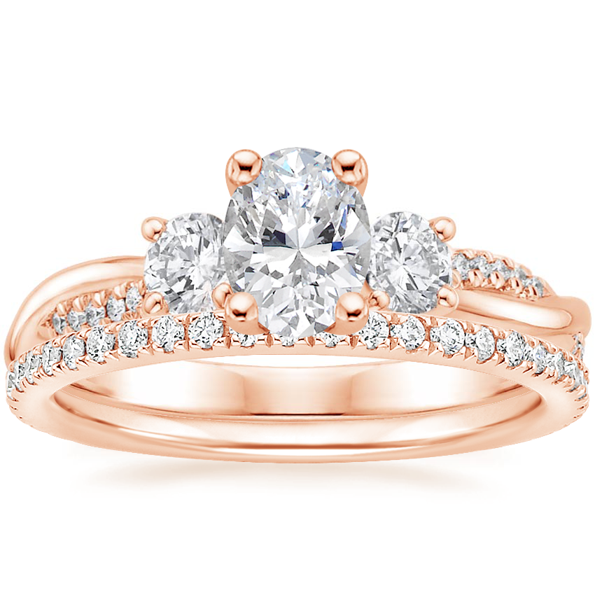 14K Rose Gold Three Stone Petite Twisted Vine Diamond Ring (2/5 ct. tw.) with Luxe Ballad Diamond Ring (1/4 ct. tw.)