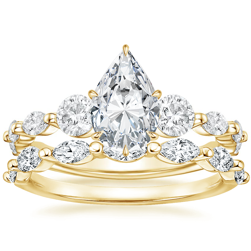18K Yellow Gold Three Stone Versailles Diamond Ring (1/2 ct. tw.) with Joelle Diamond Ring