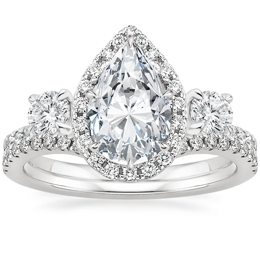 18K White Gold Three Stone Waverly Diamond Ring (3/4 ct. tw.) with Flair Diamond Ring (1/6 ct. tw.)