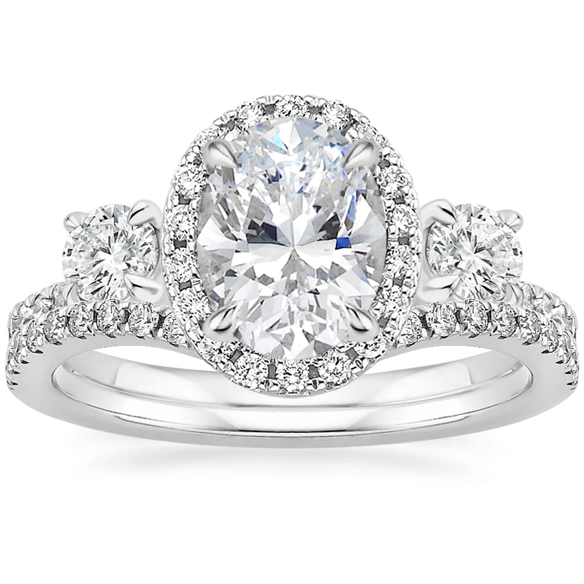 18K White Gold Three Stone Waverly Diamond Ring (3/4 ct. tw.) with Flair Diamond Ring (1/6 ct. tw.)