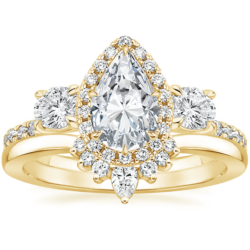 18K Yellow Gold Three Stone Waverly Diamond Ring (3/4 ct. tw.) with Lunette Diamond Ring