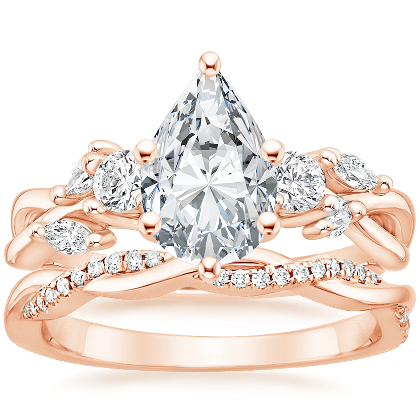 Three Stone Willow Diamond Ring (1/3 ct. tw.) with Petite Twisted Vine Diamond Ring (1/8 ct. tw.) in 14K Rose Gold