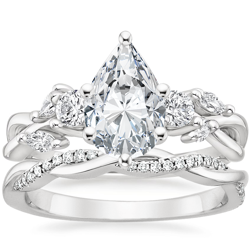 18K White Gold Three Stone Willow Diamond Ring (1/3 ct. tw.) with Petite Twisted Vine Diamond Ring (1/8 ct. tw.)