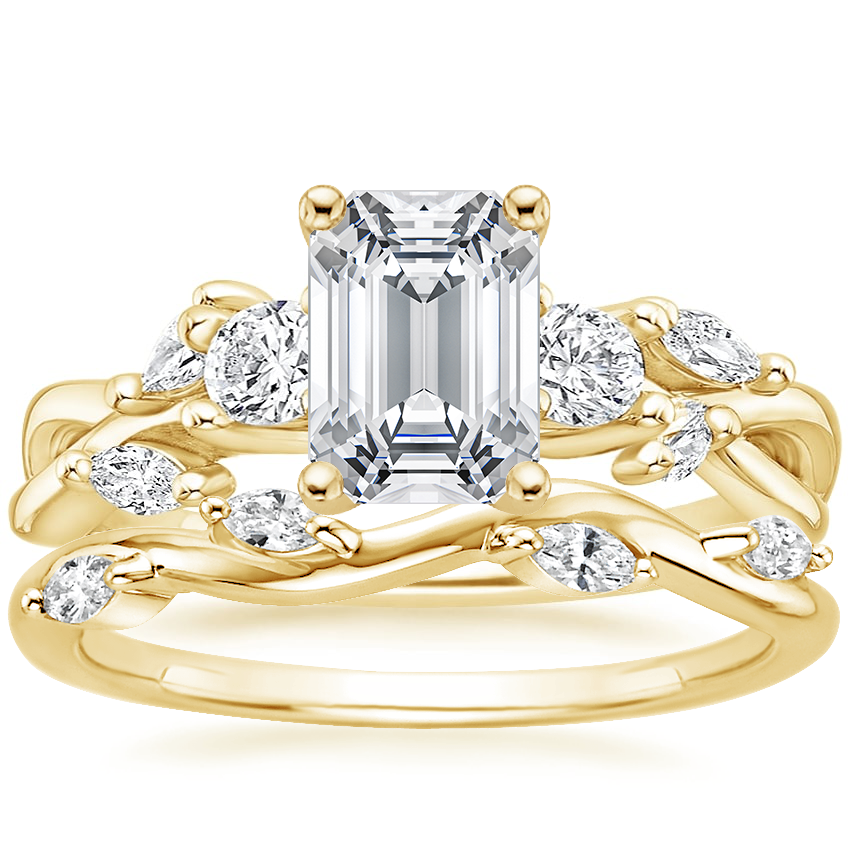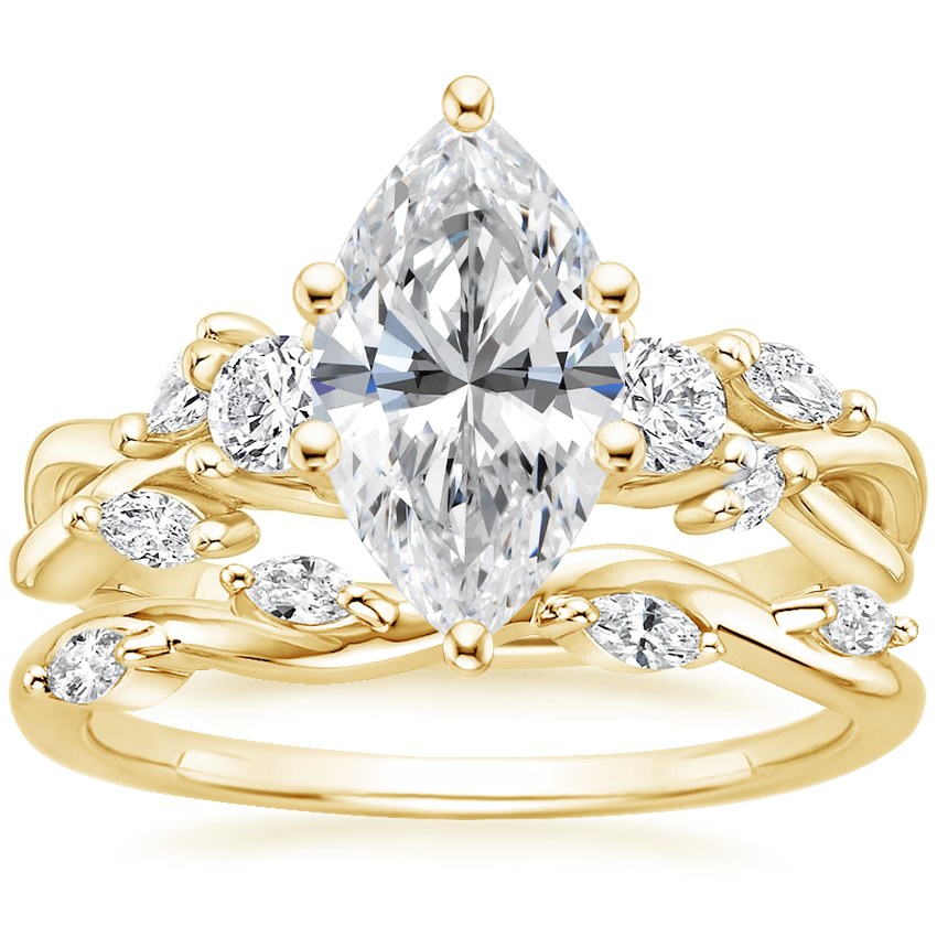 18K Yellow Gold Three Stone Willow Diamond Ring (1/3 ct. tw.) with Winding Willow Diamond Ring