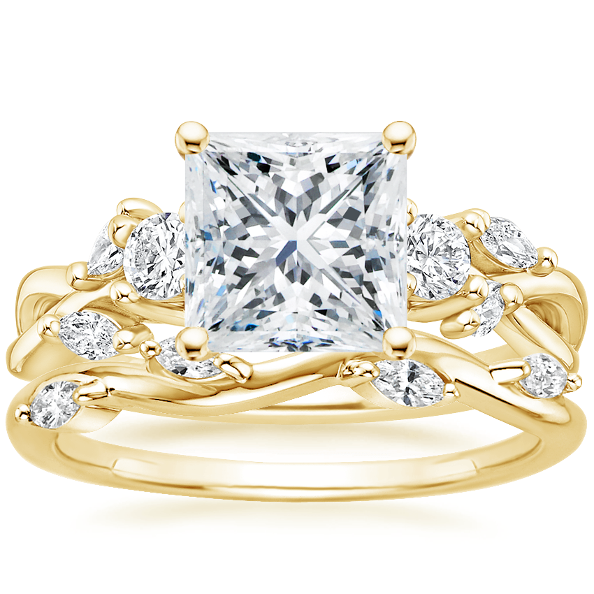 Three Stone Willow Diamond Ring (1/3 ct. tw.) with Winding Willow Diamond Ring in 18K Yellow Gold